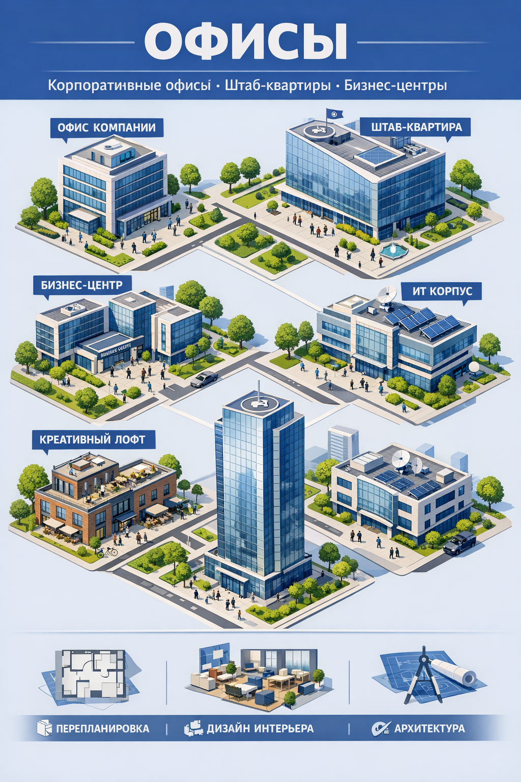 Корпоративные офисы, штаб-квартиры, бизнес-центры