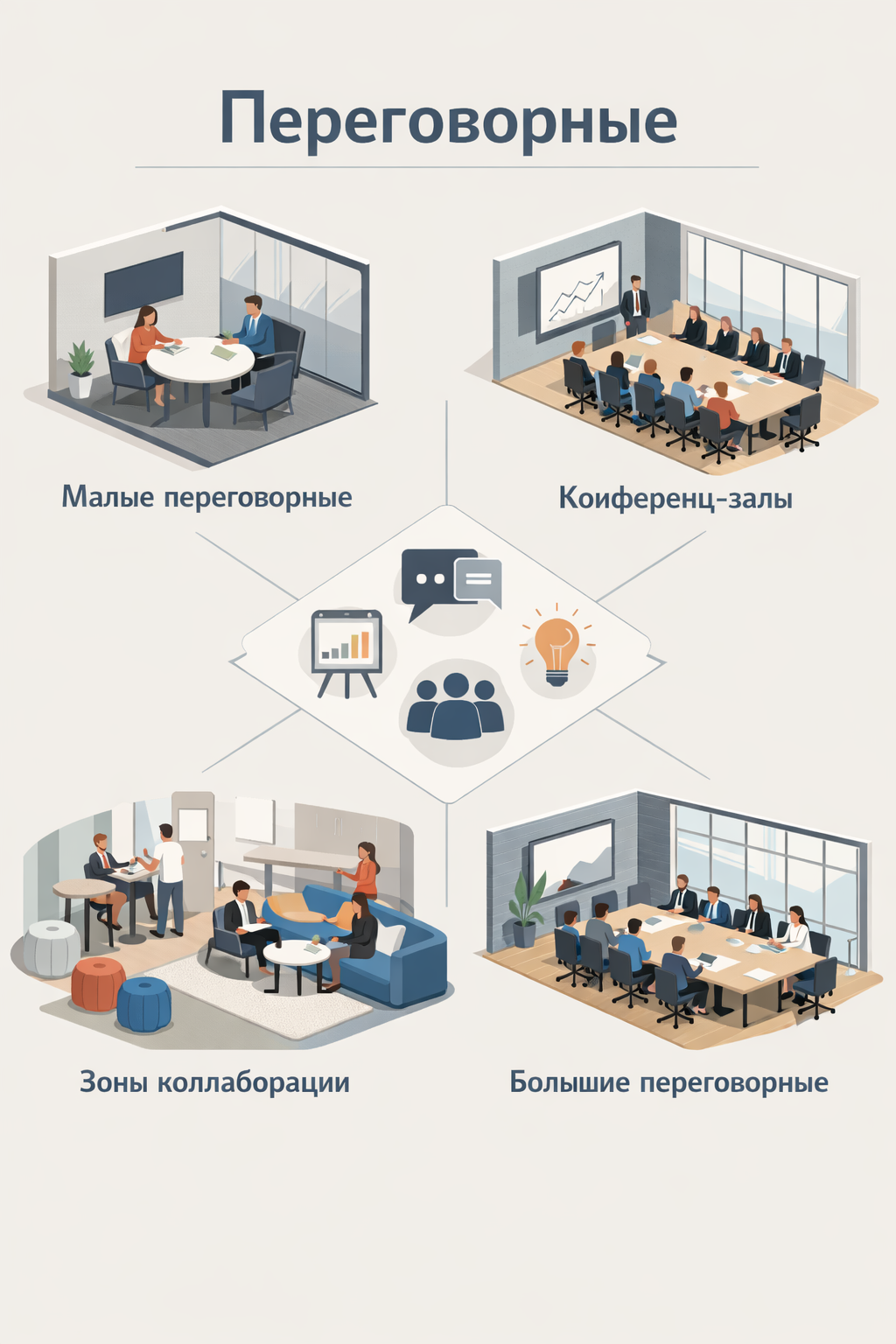 Переговорные комнаты, конференц-залы, зоны коллаборации