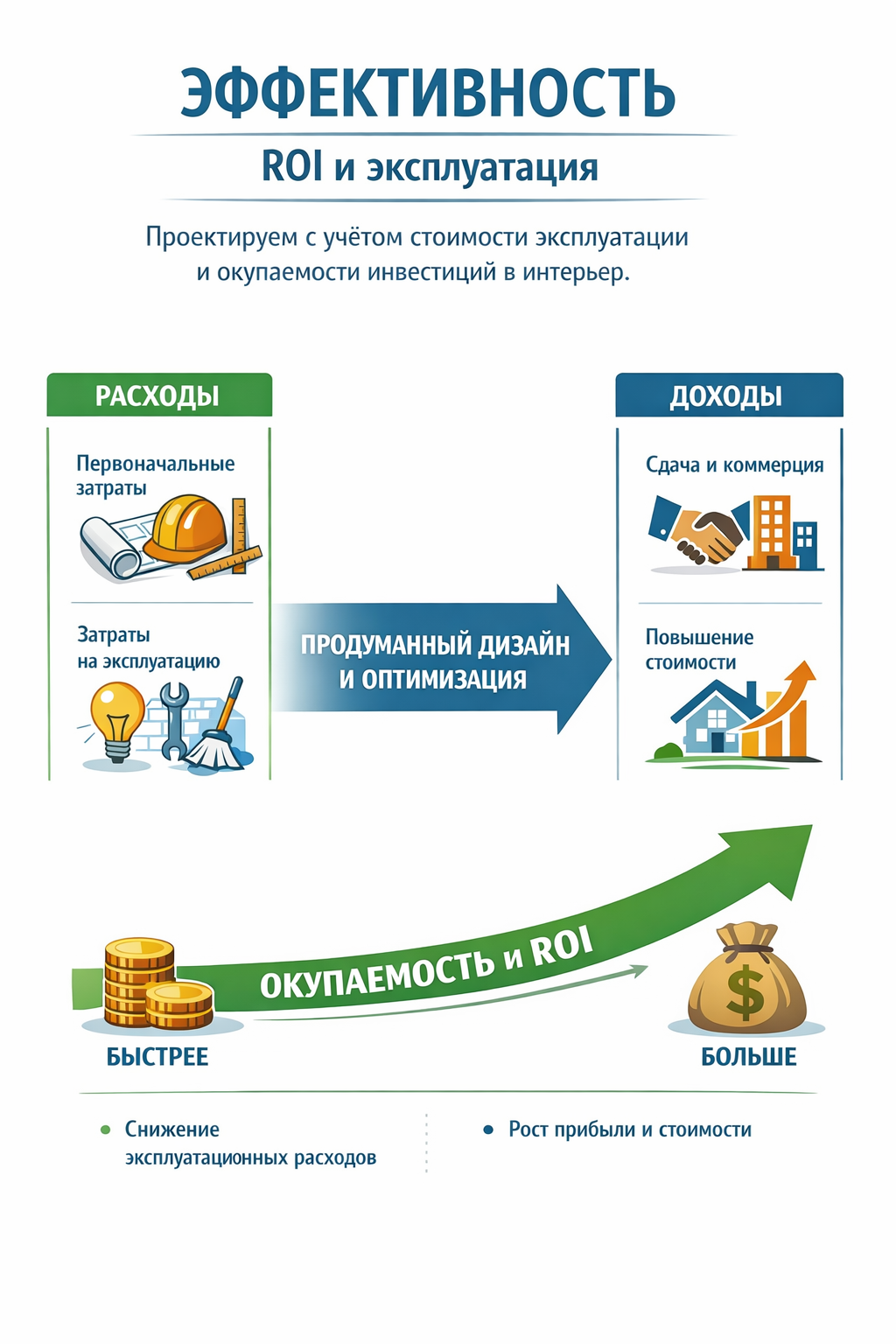 Проектируем с учётом стоимости эксплуатации и окупаемости инвестиций в интерьер.